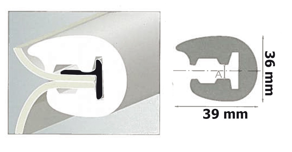Debelina stekloplastike na mestu montaže od 6 do 9 mm. Namestitev s pomočjo toplote, brez vijakov ali kovic. Mere: - višina: 36 mm - širina: 39 mm Dobavljivo v dolžini 12 m, 24m, 48m