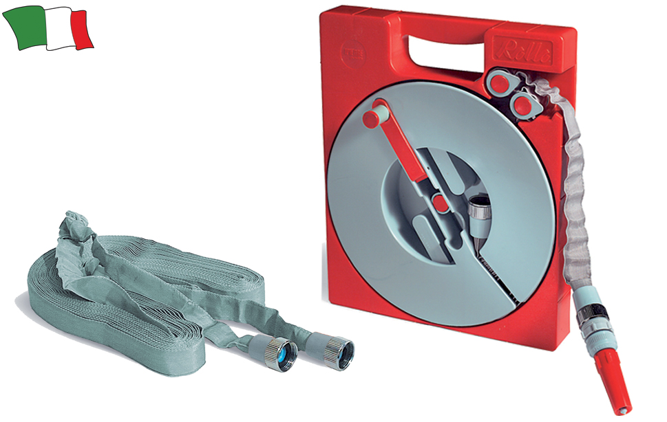 Prenosni navijalec cevi "ROLLO 20" s hitrimi nastavki in ploščato cevjo dolžine 20m.