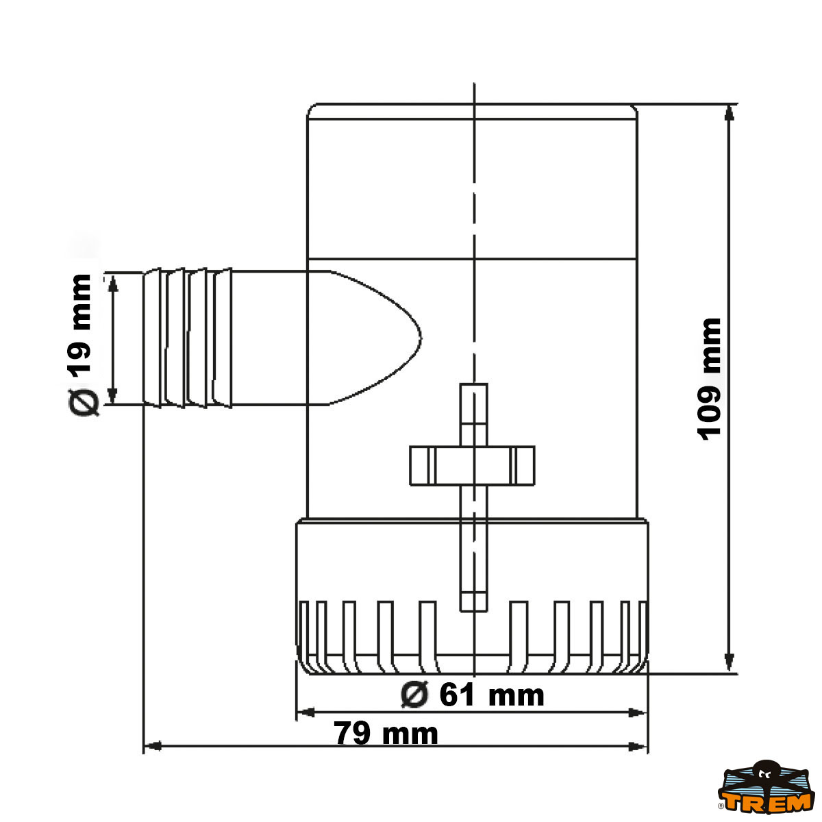 Izdelana iz ABS plastike odporne na udarce. Nizka amperaža: 2,5 A/h. Z zapahom za enostavno upravljanje in čiščenje. Največja tlačna višina prečrpavanja (m): 3,80 m. | Napetost: 12V | Pretok GPH: 550 | Lt./H: 2080 | Odprtina Ø mm: 19 | Teža Kg: 0,320| Povezave: https://www.trem.net/docs/certificati/24264098c1.pdf . Cena za: 1 kos