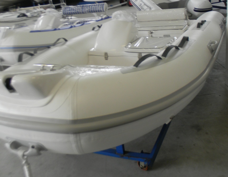 Linija gumenjakov GIBSI Venus ima trdo dno iz poliestra, upravljalno konzolo in veliko odlagalnih prostorov. Namenjeni so zahtevnejšim morjeplovcem in daljšim in zahtevnejšim plovbam. Odlikujejo jih dobre plovne lastnosti, stabilnost, funkcionalnost, čvrstost, elegantana linija. Gumenjak namenjen družini ali kot pomožni čoln na večjih plovilih. Zunanja zaščitna obroba je namenjena prav hranjenu na večjih plovilih tako, da ne pride do poškodb. Garancija na tkanino 5 let. Čas dobave 7 dni. Tehnični podatki: Dolžina: 3,60 m Širina: 1,70 m Notranja dolžina: 2,3 m Notranja širina: 86 cm Premer napihljivega dela: 42 cm Prekati: 3 Teža: 135,00 kg Nosilnost oseb: 5 Najvčja priporočena moč KW/HP: 22/30 Kategorija plovbe: C Material: PVC in poliester. PVC 1000gr/m2-1100 den Višina krme 42 cm primerna kratka noga. Standardna oprema: čoln kot na sliki, konzola z volanom in pletenico, krmno in premčno sedišče z odlagalnim prostorom, sredinska klop, komplet za popravilo, mehanska tlačna črpalka, navodila za uporabo. Možen le osebni prevzem