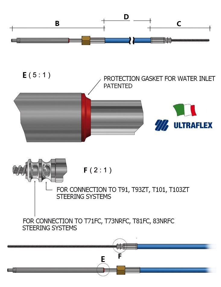 Volanska pletenica M90 Mach je primeren za uporabo s krmilnimi mehanizmi Ultraflex: T91, T93ZT, T101, T103ZT, T71FC, T72FC, T73NRFC, T74NRFC, T81FC, T82FC, T83NRFC, T85.
