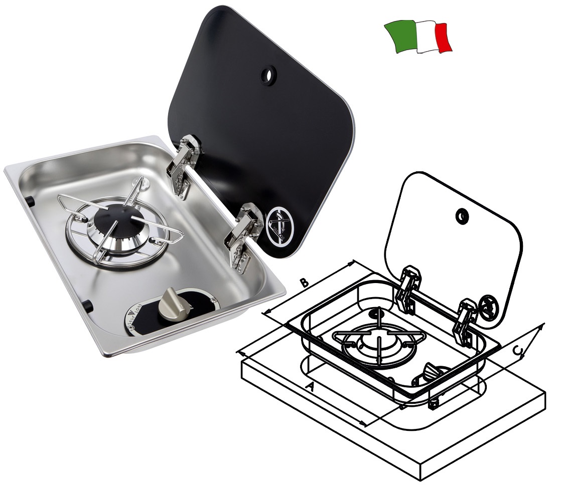 Enojni vgradni plinski kuhalnik z steklenim pokrovom