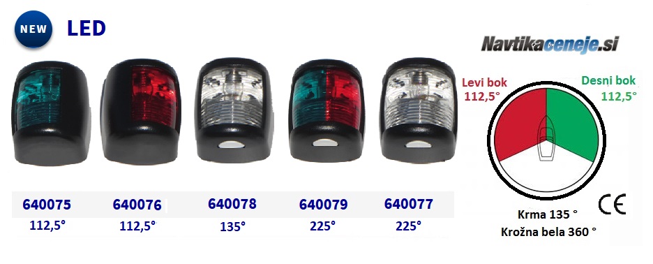 Krmna navigacijska LED luč, bela, 135°, črno ohišje