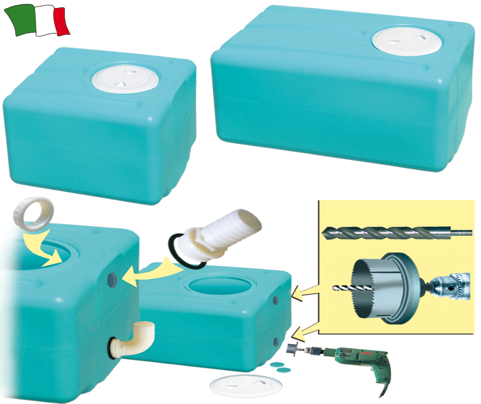 Polietilenski rezervoar pitne vode. Kapaciteta: 107 litrov Dolžina: 105cm Širina: 390mm Višina: 290mm