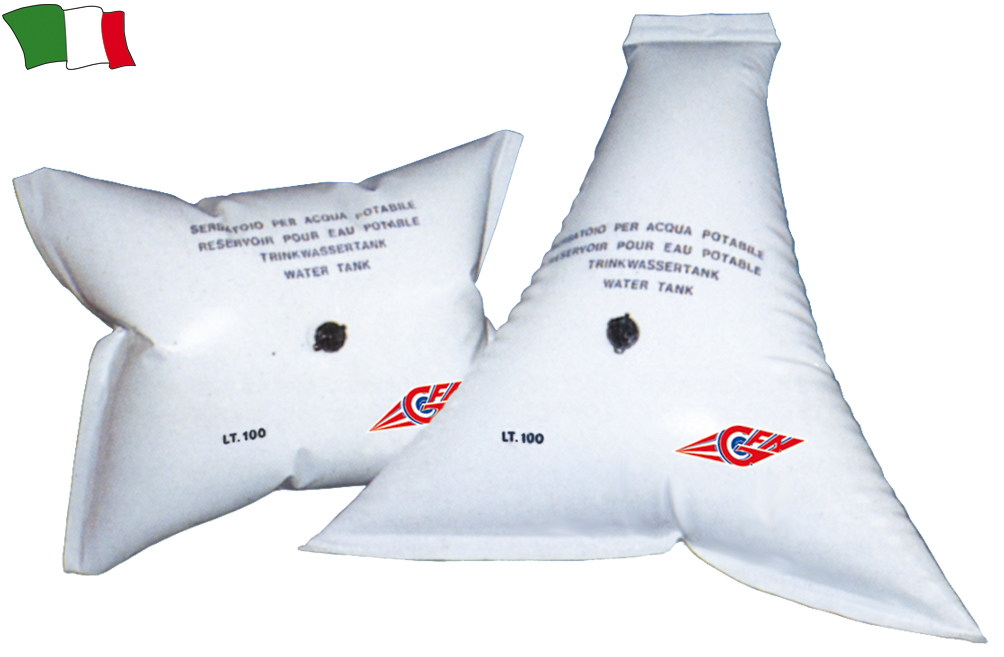Upogljiv rezervoar za pitno vodo izdelan iz termoplastičnega elastomera z termično varjenimi robovi. Priključki niso priloženi. Štirikoten model, kapacitete 210 litrov. Dimenzije: 74x175cm. Kompatibilni priključki atr. 250285 - 250286 NN004GFN