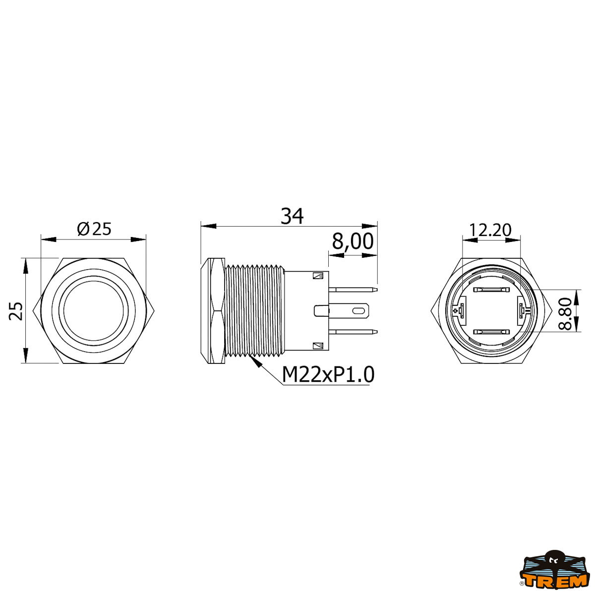 Ohišje iz nerjavečega jekla Aisi 316. Zmogljivost obremenitve 15A, 9-24V. IP67 Trajnost 20.000 ciklov. IP 67 | Barva: Rdeča | Model: (ON)-OFF (začasno) | V: 9-24 | Amp: 15 | Cena za: 1 kos
