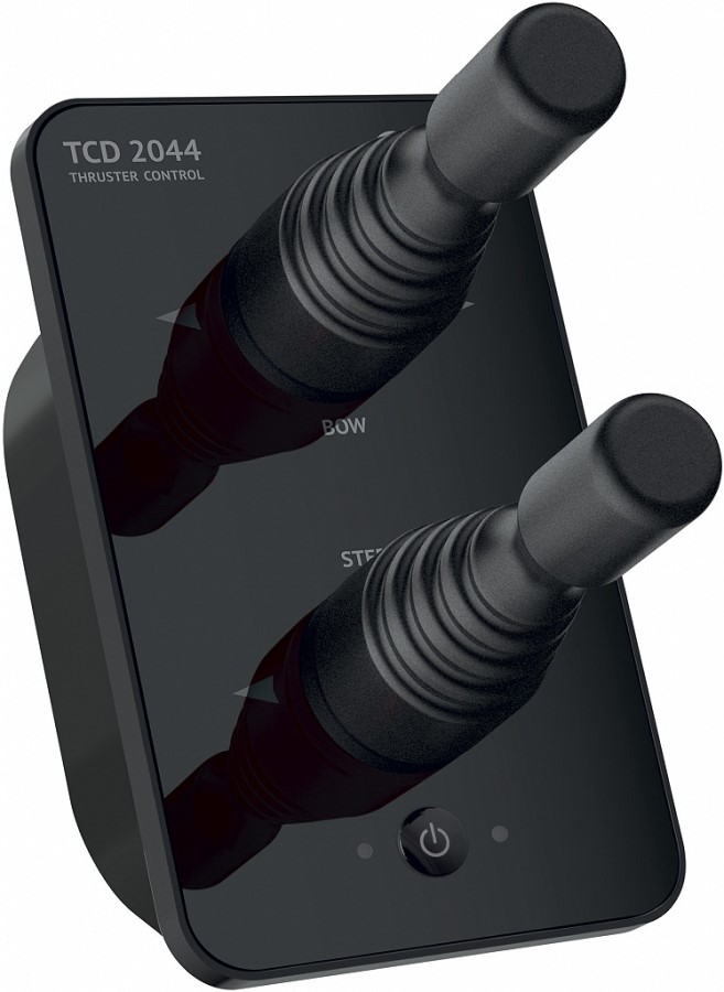 TCD 2044 Nadzorna plošča Za upravljanje dveh propelerjev BTQ, premčnega in krmnega, preko plošče, opremljene z dvema enojnima krmilnima palicama-jiystikoma.