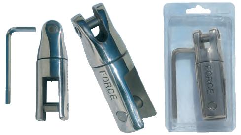 Vrtljiva sidrna sponka iz inox materiala AISI 316. Preprečuje zapletanje verige. Pomembna lastnost izdelka: konstrikcijsko je tako zasnovan oziroma dimenzioniran, da ne poči.