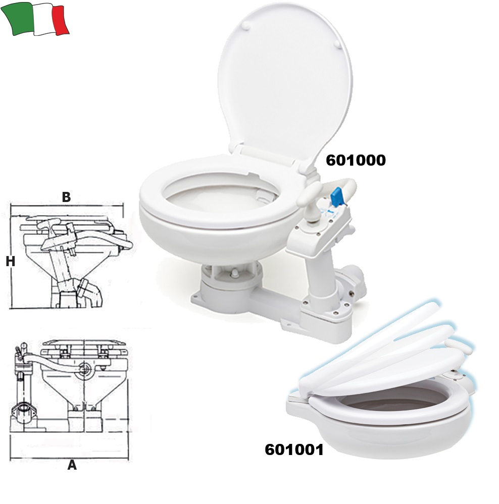 Porecelanasta WC školka z ročno črpalko kompaktne izvedbe. Omogoča enostavno in temeljito čiščenje. Vsi vgrajeni koviski deli so iz INOX jekla. Možnost priklopa nad in pod palubo. Škoka ima plastičen pokrov z tihim zapiranjem brez vdarca.