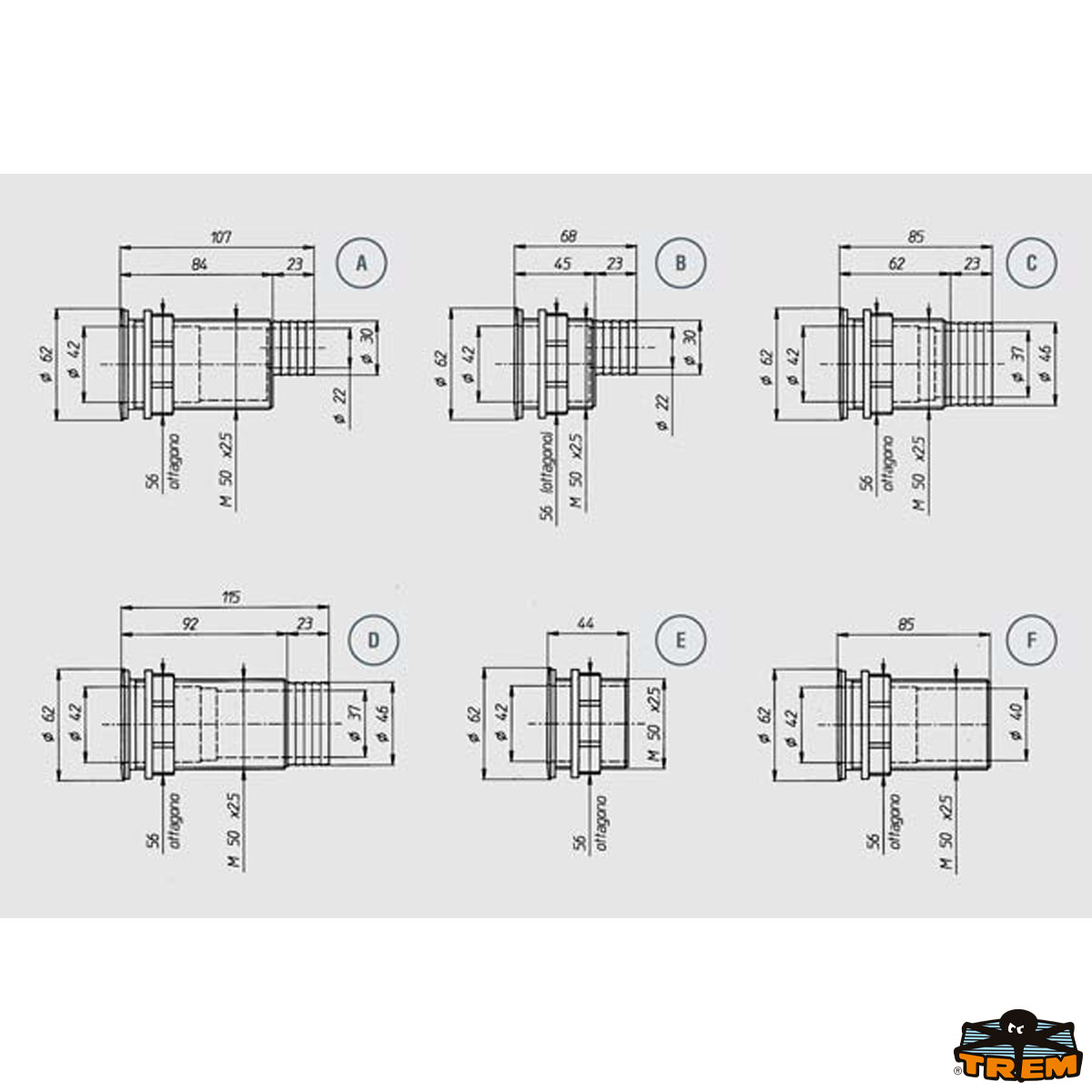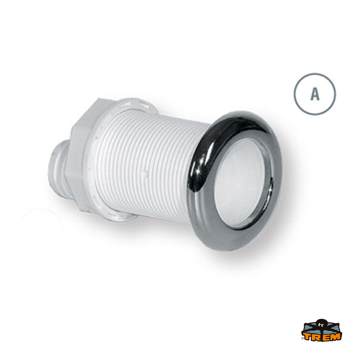 Notranji premer puše za odvod vode 42 mm s prirobnico iz aisi 316 | Model: brez nastavka za cev, dolžina mm: 85| Povezave: Izdelana iz bele plastike s prirobnico iz nerjavečega jekla Aisi 316. Cena za: 1 kos