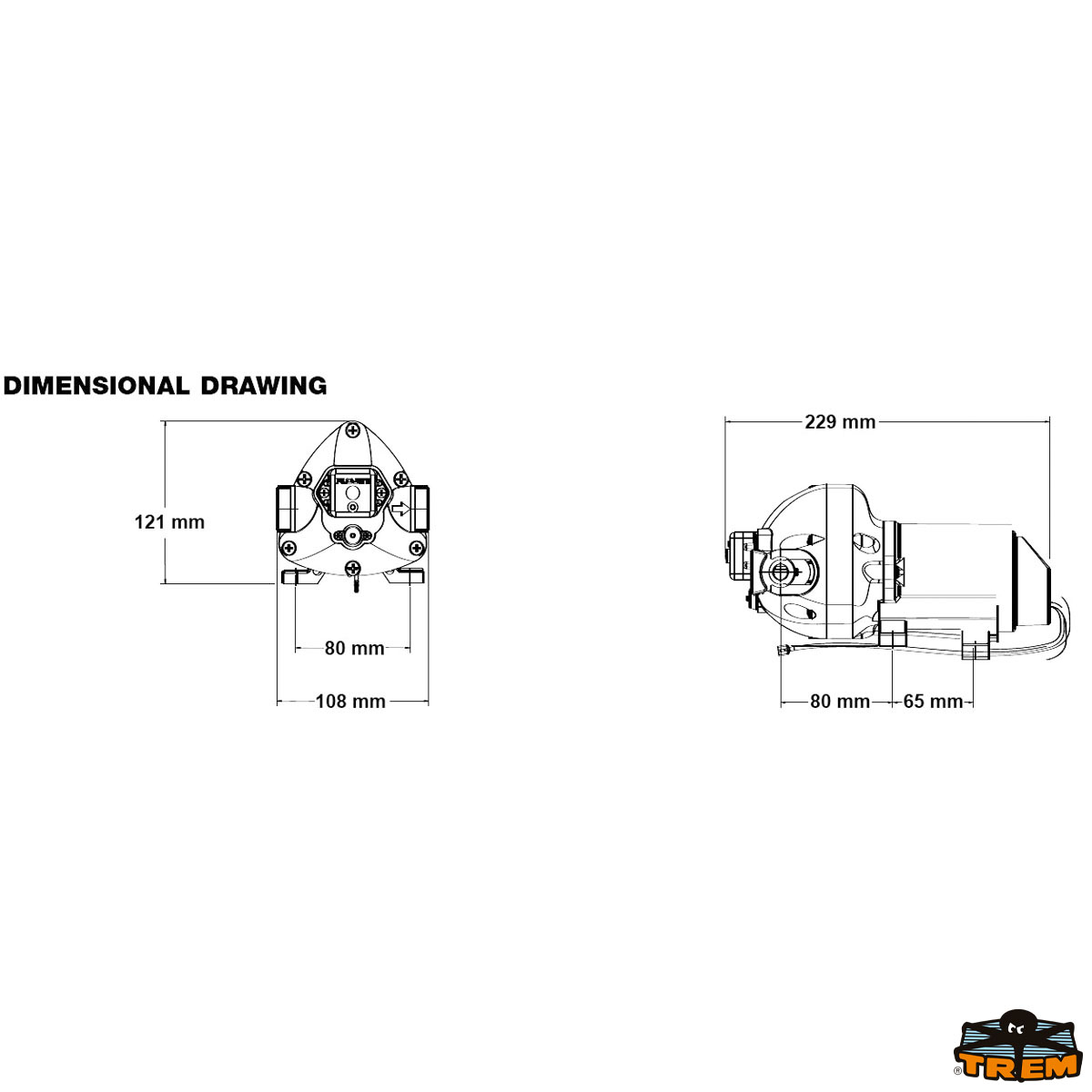 3-membranska samousisna pumpa za slatku - pitku vodu. Tiho djelovanje, bypass za prigušenje pulsiranja. Mekani gumeni nosači za sprječavanje vibracija. Samousisna do 3 m. Može raditi na suho bez oštećenja. U skladu s ISO 8846 MARINE (zaštita od paljenja). U kompletu s tlačnim prekidačem. FLOJET, CE | Napetost: 12 V | Protok Lt/min: 11 | Amp max: 5,2 | PSI: 25 | Izhodni Ø mm: 13 | Težina Kg: 1.800 | Cijena za: 1 kom