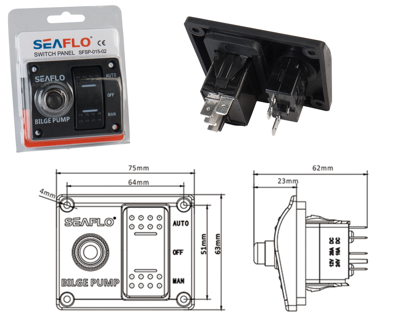 Prekidač za uključivanje kaljužne pumpe s ugrađenim nosačem osigurača. Omogućuje ručno i automatsko djelovanje. (MAN-OFF-AUTO)