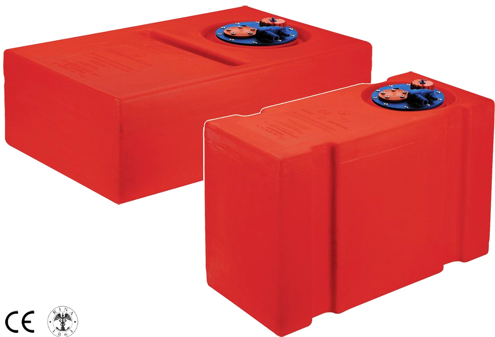 Namjenski polietilenski-Eltex fiksni rezervoar za gorivo (također za kiseline) usklađen s CE i RINA normama. Predispozicija 3/8" za odušnik, predispozicija 1/4" za plutaču ili drugu cijev pri dva motora odnosno za povratnu cijev, čep s odušnikom. Indikator razine goriva nije u kompletu, uz doplatu može biti mehanički ili električni. Cijena za 1 kom.