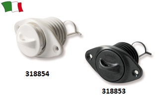 Plastični čep za ispuštanje kaljužne vode. Dimenzije: 51 x 30 mm, promjer navoja: 19 mm, promjer urezanog dijela čepa: 26 mm, razmak između srednica vijaka: 42 mm, bijele boje.