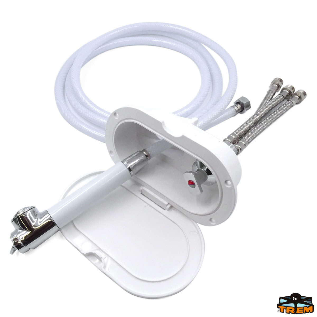 Ugradni tuš s miješalicom i tušem s pritiskom na gumb, bijeli, 2,5 m cijev