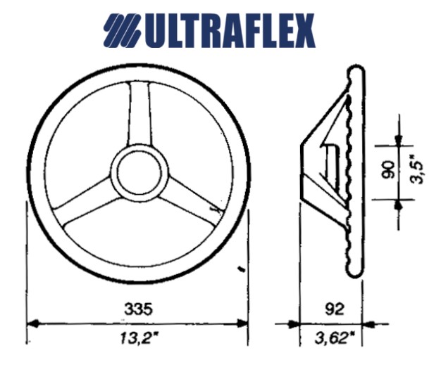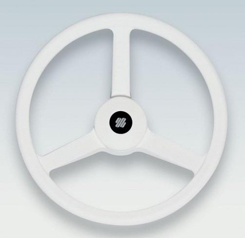 Volan s 3 kraka, promjera 330 mm od bijelog termoplastičnog materijala. Pogodan za manja plovila i gumenjake. Kompletan za montažu. Nasad je standardni stožasti.