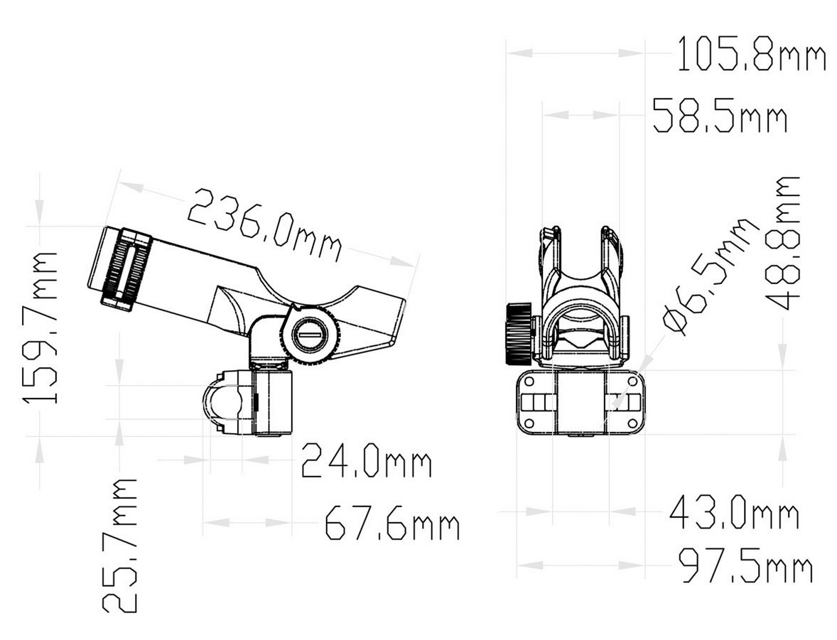 Nosač štapa za pecanje, plastični, s dvostrukom mogućnošću zakretanja, za montažu na stijenku