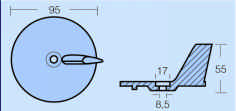 Dimenzije: promjer 95 mm, visina peraje 55 mm, rupa promjera 8,5 mm, na vrhu bušena na 17 mm.