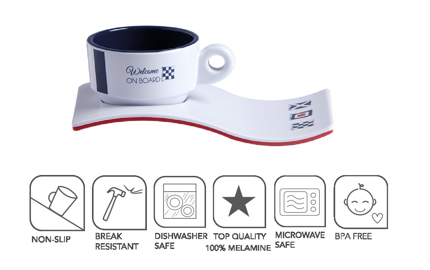 Set 6 skodelic in krožnikov iz odporne kakovostne plastike linja VENEZIA, priznanega proizvajalca BLUE MARINE.