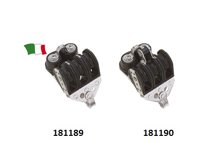 Uležajen trojni škripec s štoperji iz karbonskih vlaken ter obešalom.